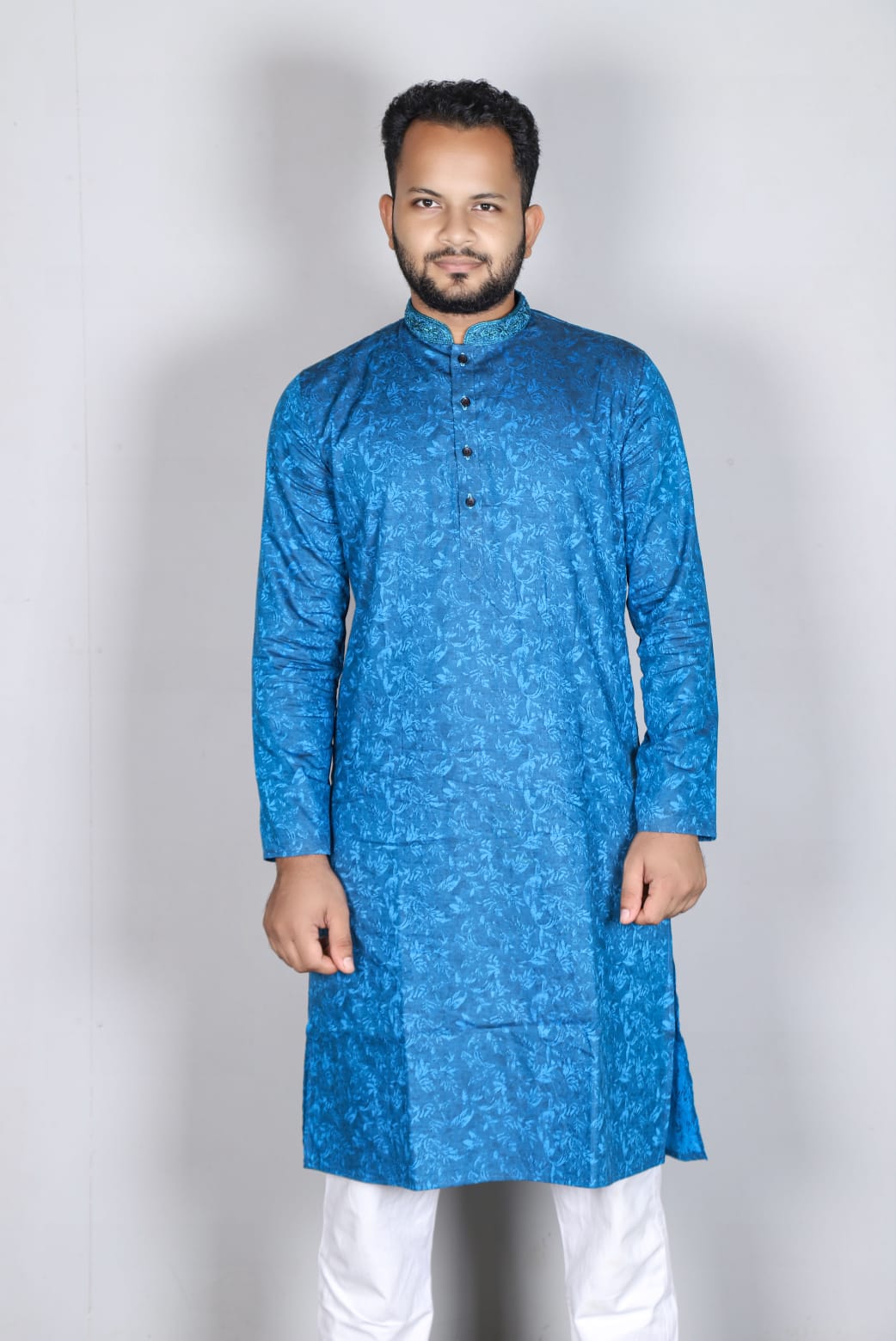 o Fabric Details : Indian blue Jacquard Print Panjabi 100%
